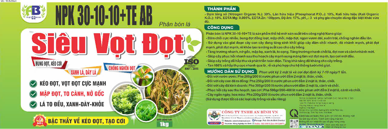 👉 NPK 30-10-10+TE AB – Siêu Vọt Đọt chính là giải pháp tối ưu, ứng dụng Nano Technology, mang lại hiệu quả vượt trội cho mọi loại cây trồng.