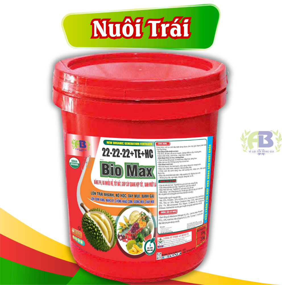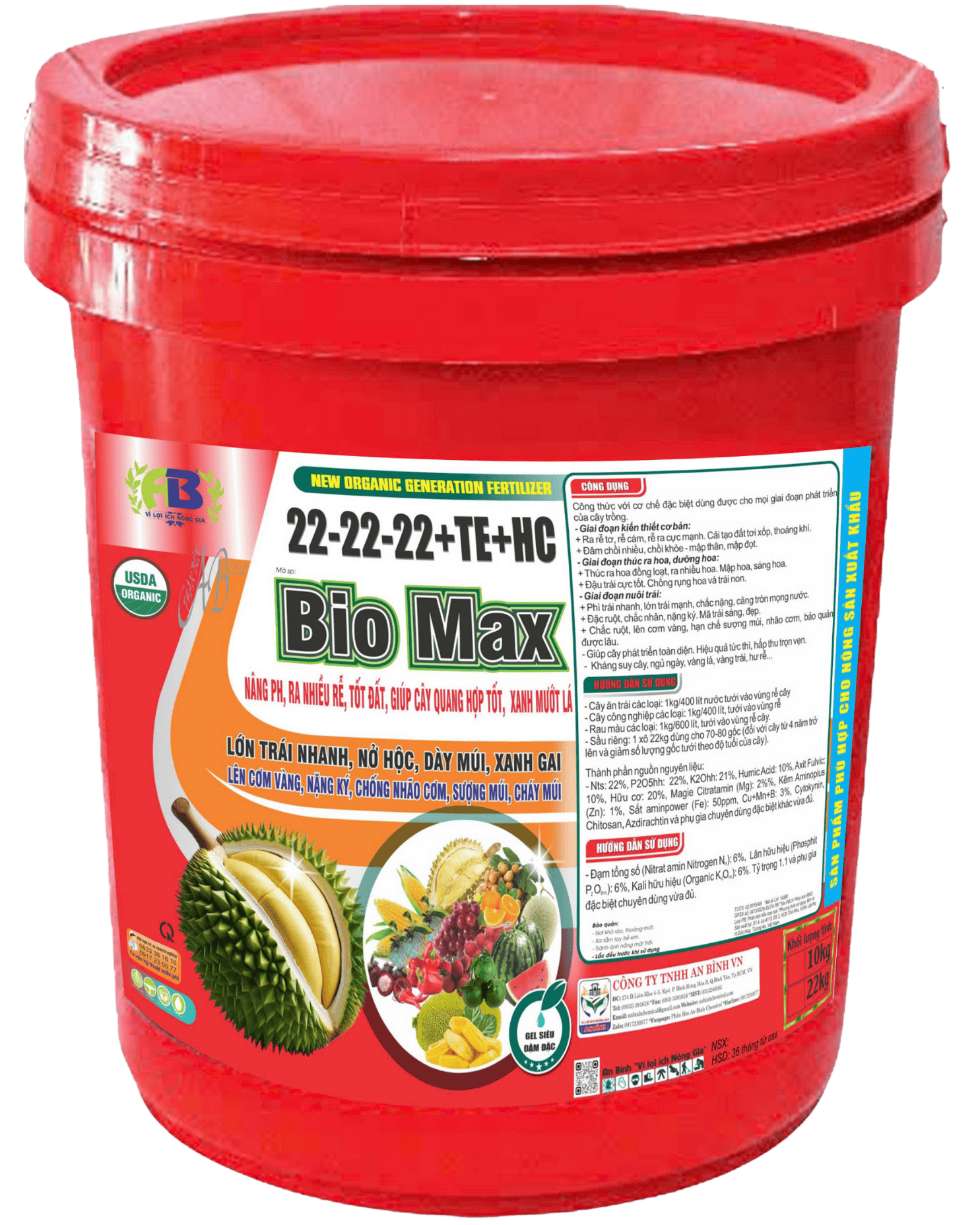 Bio Max 22-22-22 + TE + HC là dòng phân bón hữu cơ thế hệ mới, được nghiên cứu và phát triển với công thức NPK 22-22-22 kết hợp trung vi lượng (TE) và hợp chất hữu cơ (HC). Sản phẩm được chứng nhận hữu cơ quốc tế (USDA Organic), giúp: