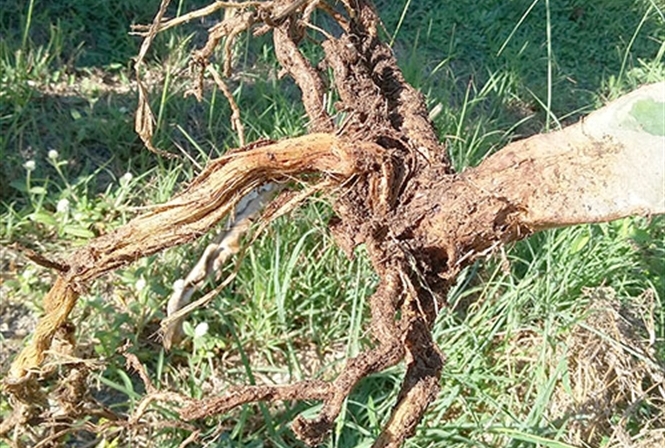 - Do bộ rễ đã bị hư hại, rễ tơ – rễ cám bị thối đen hoặc khô. Nếu bị nặng rễ cộc gãy ngang bên trong xuất hiện tia gỗ đen.