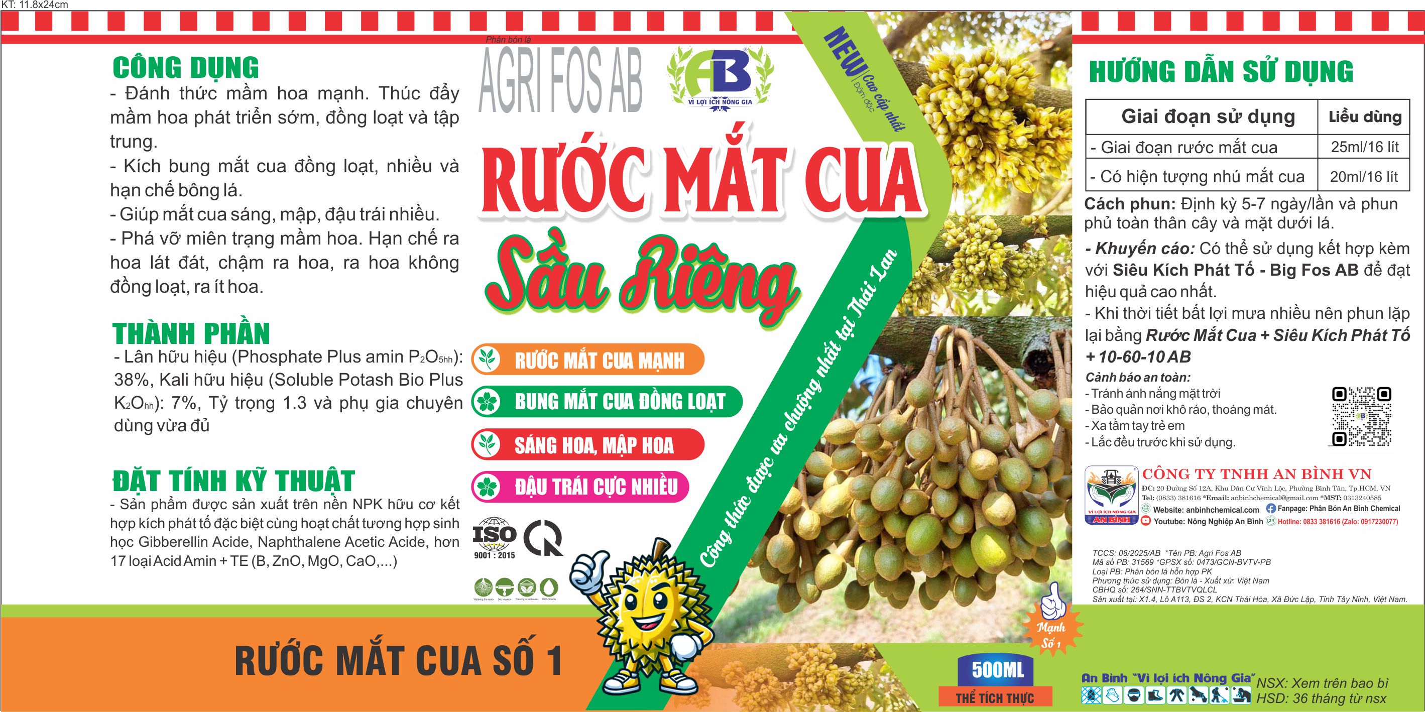 Tên sản phẩm: RƯỚC MẮT CUA SẦU RIÊNG – AGRI FOS AB